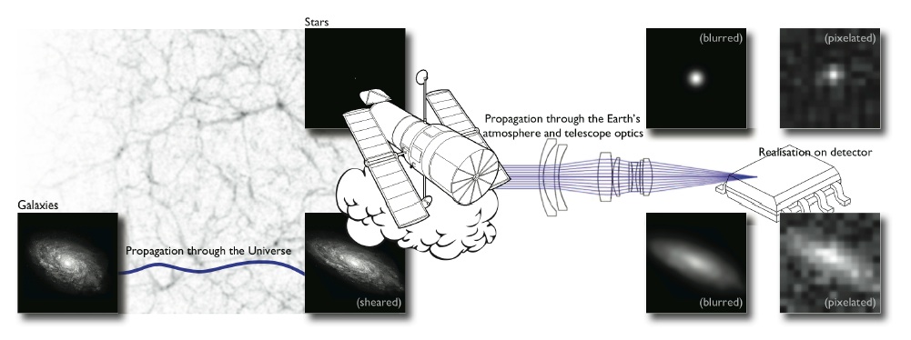 ⟶ can be measured by statistical analysis of galaxy shapes